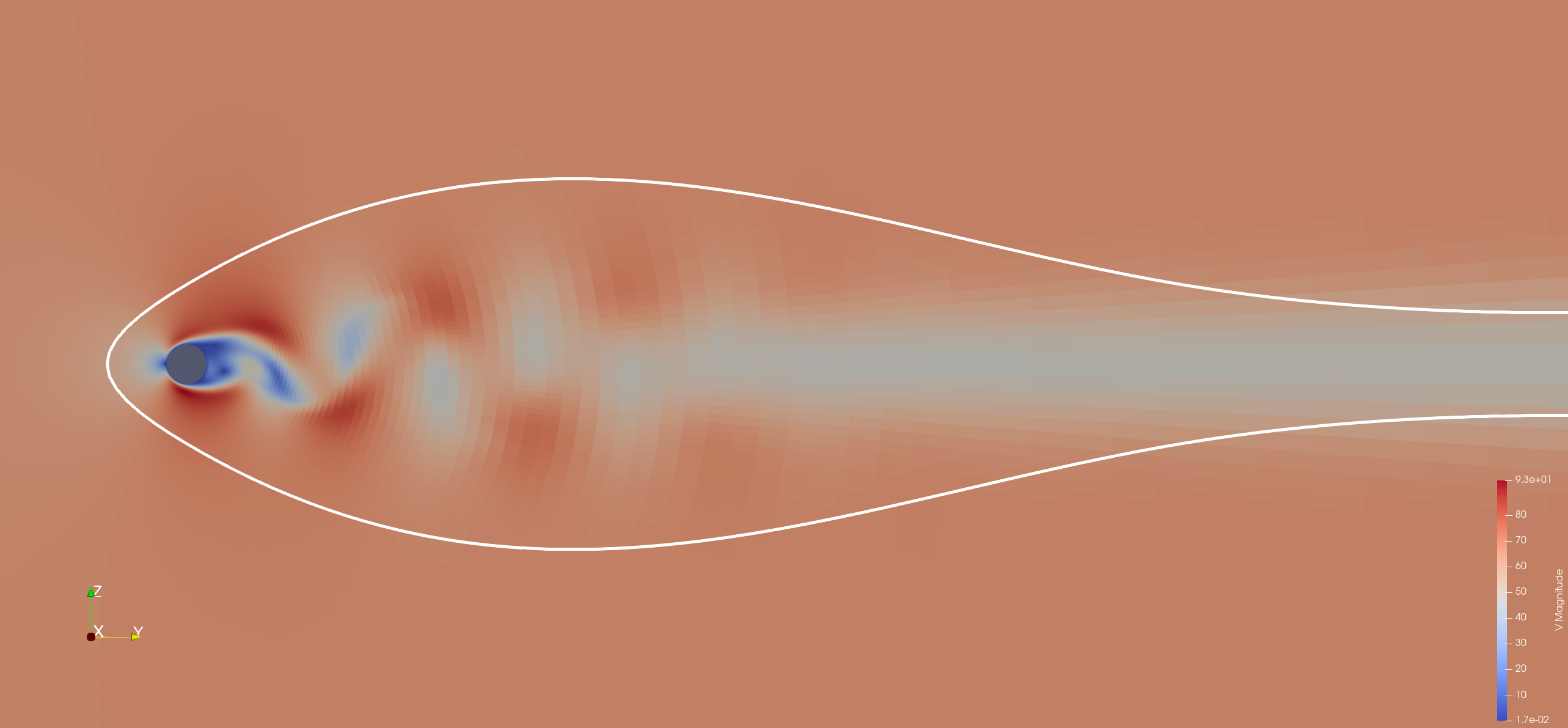 The flow we’re going to be running the FWH solver on is the shedding cylinder. To get the required inputs to our FWH solver, we need to define an FWH surface, and collect data on this surface during a CFD simulation.