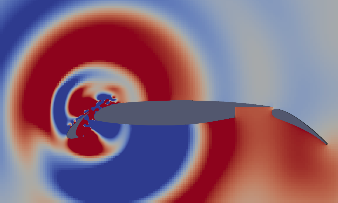 You can now zoom in towards the aerofoil slat region to clearly view the acoustics.